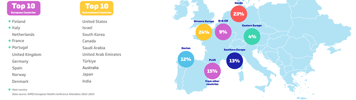 With a strong turnout from our host country, you will connect with like-minded local peers and regional experts, as you access the latest solutions, learnings and best practices across Europe and find clinically proven tech solutions that personalise care and boost patient outcomes.
