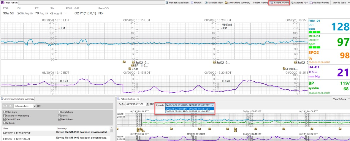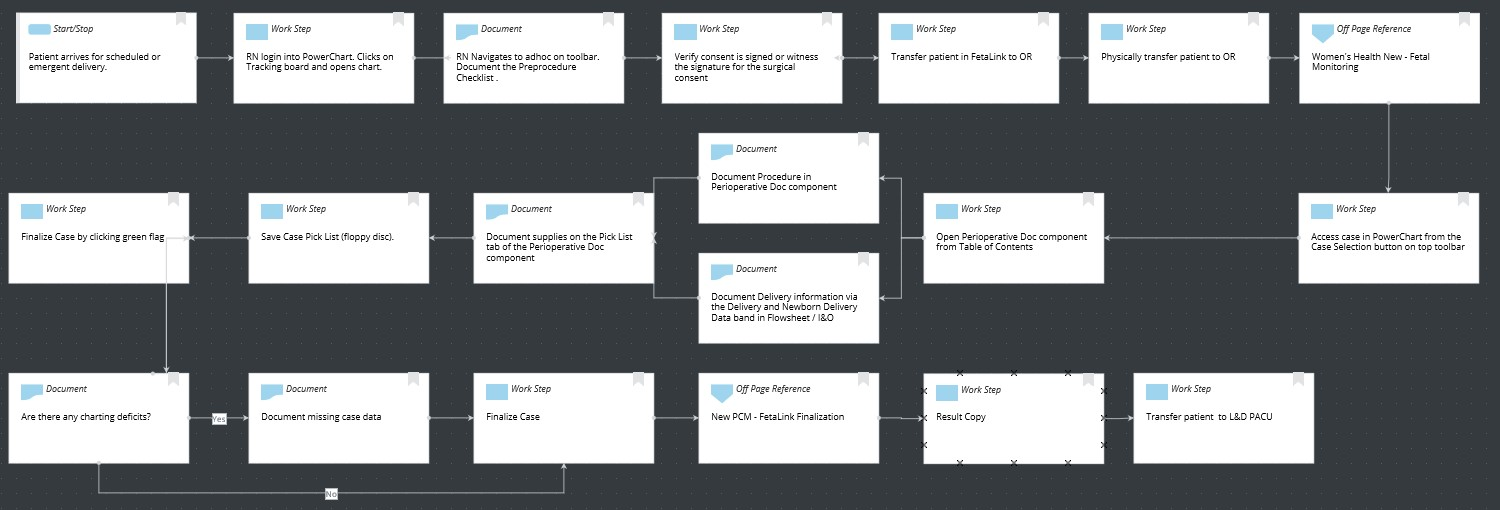 Other safety aspects include the integration with fetal monitoring. Patients are associated to fetal monitors using the Fetalink™ application. Maternal vital signs interface into PowerChart IView™ in addition to all annotations documented within the Fetalink application. Once the patient is in Post-Anesthesia Care Unit (PACU) the patient is then associated to the bedside vital sign monitors using the associate device function in IView™ where vital signs are also interfaced. Maternal previous C-section history status displays within the Fetalink application in addition to gravida and para counts. Providers are also able to view fetal strips remotely using the Fetalink mobile app, Fetalink+. Any previously saved fetal strips archived throughout patient's pregnancy and can be viewed straight from the Fetalink application as well as within the Women's Health Overview component (Figure 6).