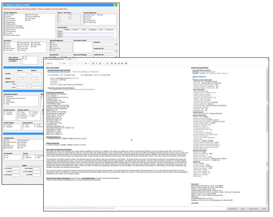 PowerForms™ are used by providers to document the data of the cesarean section delivery. This is extractable data and is pulled into the provider’s note which improves the communication of care for the care team (figure 4).